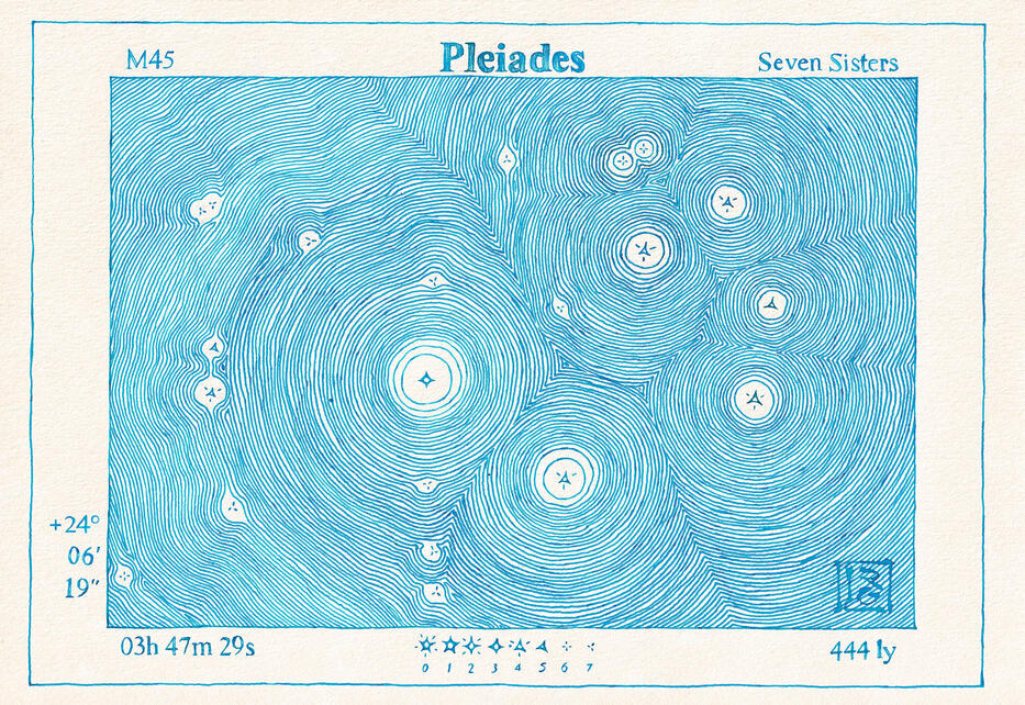 SÅLD2500 krEn illustration av Plejaderna, eller de sju systrarna som de också kallas, i flytande akvarell.